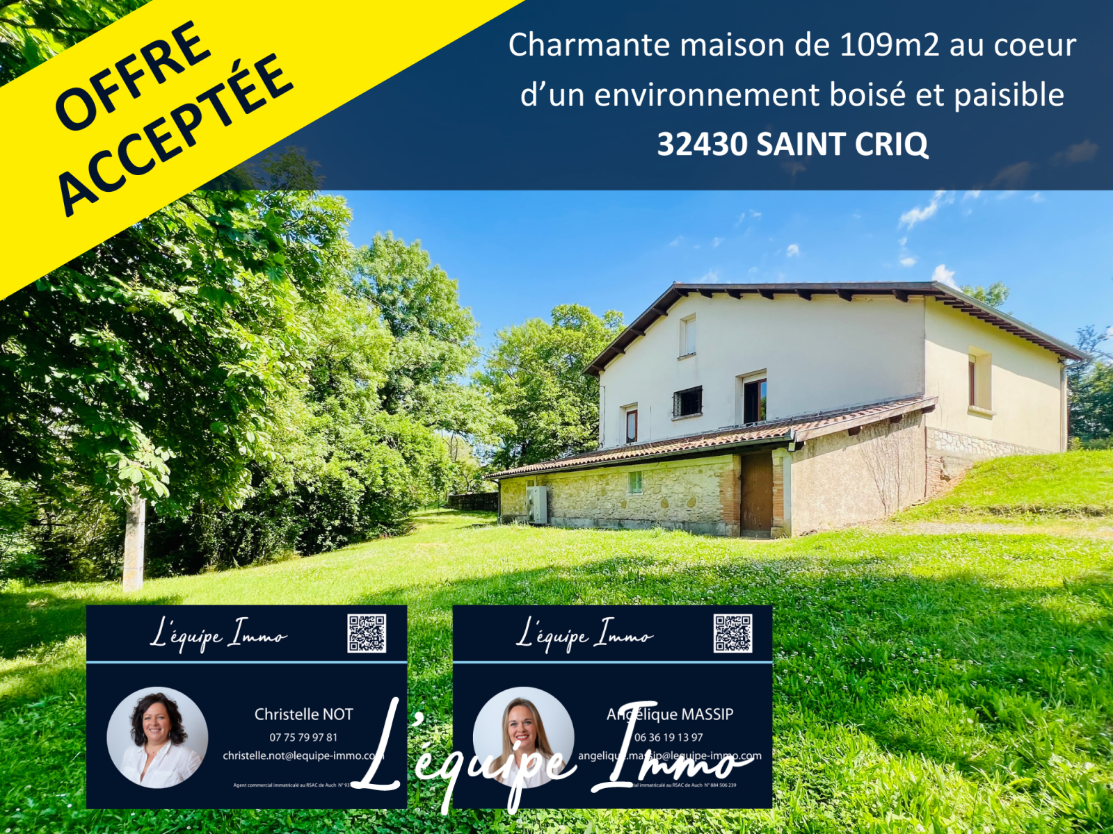 La maison d'une superficie habitables de 109m² est composée d'un hall d'entrée, d'un séjour avec accès direct à une agréable terrasse idéale pour profiter des beaux jours, une cuisine indépendante également ouverte sur l'extèrieur, de quatre chambres, une salle de bains et toilettes séparés.
