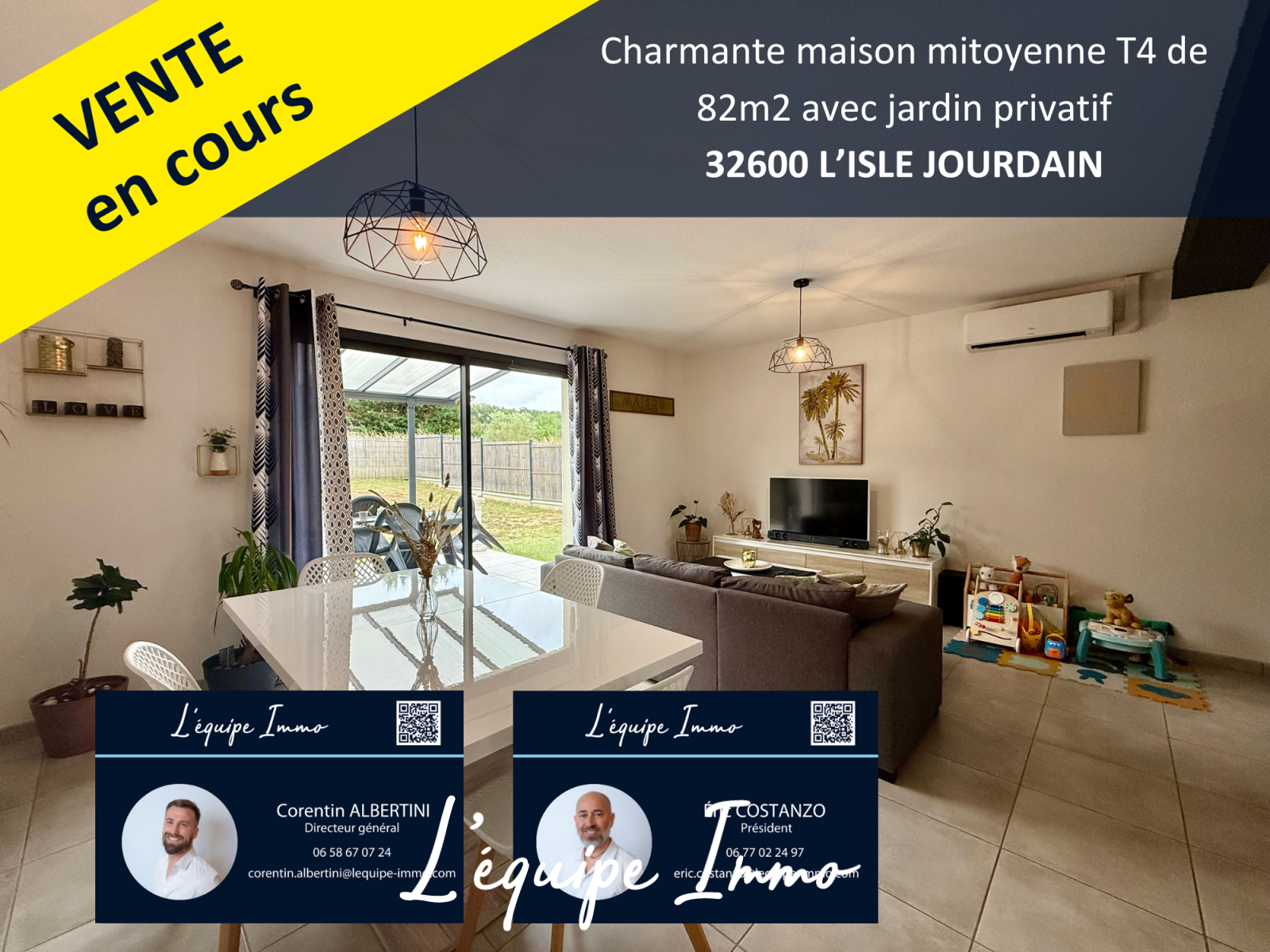 Située à seulement 3 km du centre-ville de L’Isle-Jourdain, venez découvrir cette charmante maison mitoyenne T4 de 82 m² habitables avec jardin privatif, idéale pour un premier achat.
