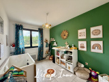 À l’étage, l’espace nuit comprend trois chambres avec placards intégrés, une salle de bains avec wc, offrant confort et praticité au quotidien. Climatisation réversible, volets roulants électriques.