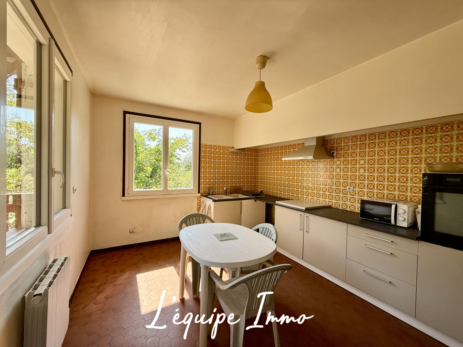 À l’étage, l’entrée distribue une cuisine indépendante, un salon-séjour lumineux agrémenté d’une cheminée, trois chambres confortables ainsi qu’une salle de bain.