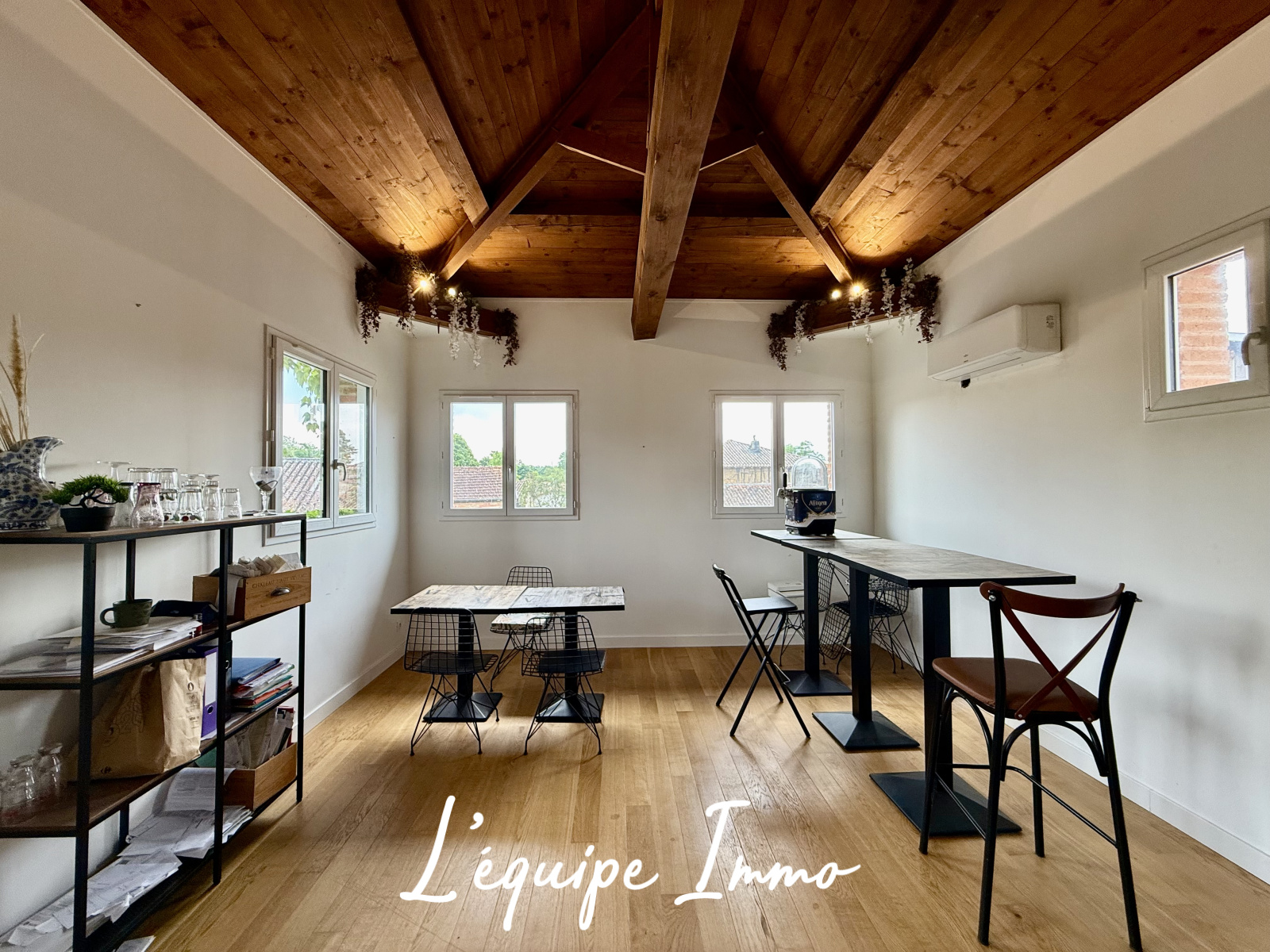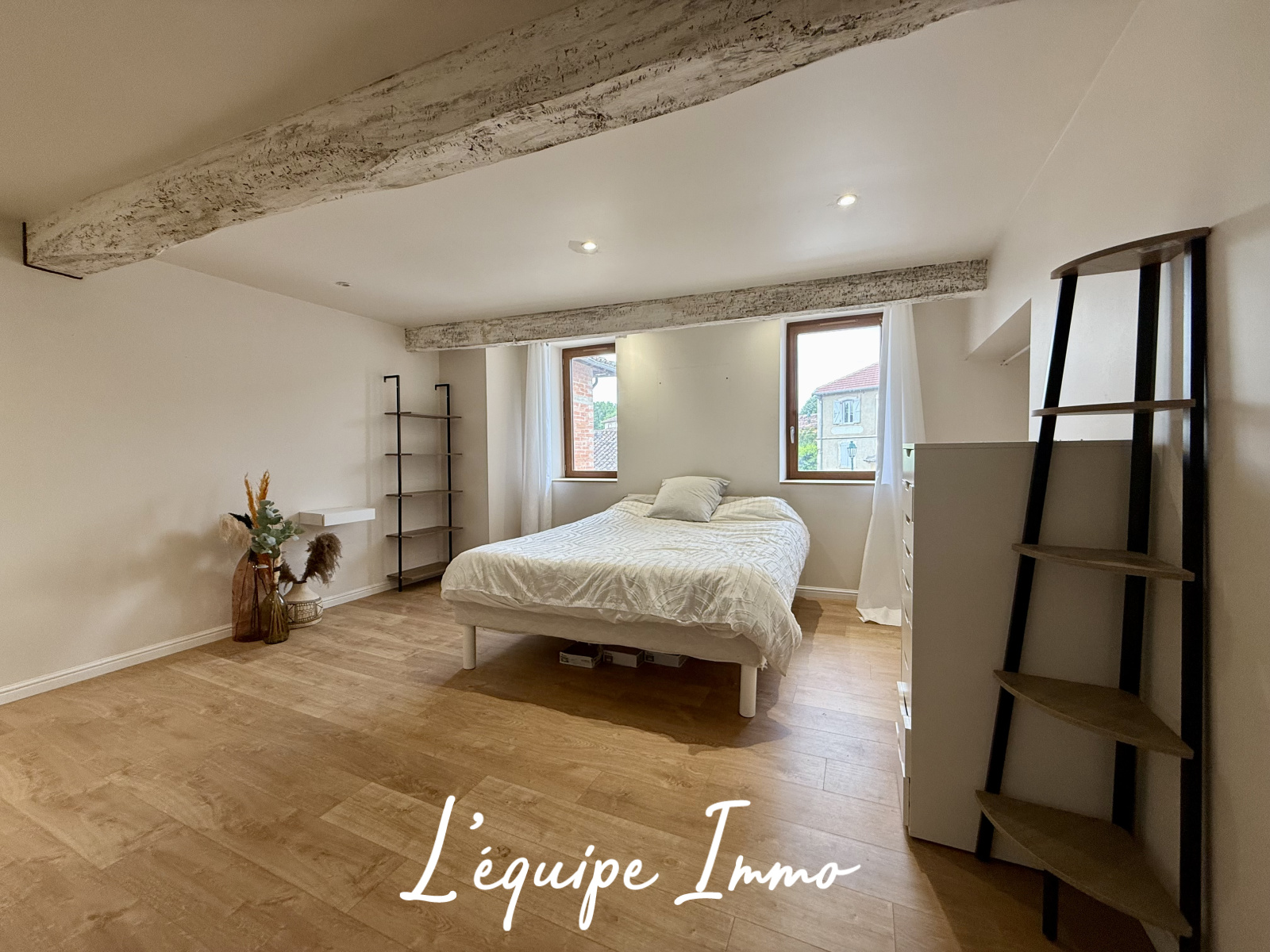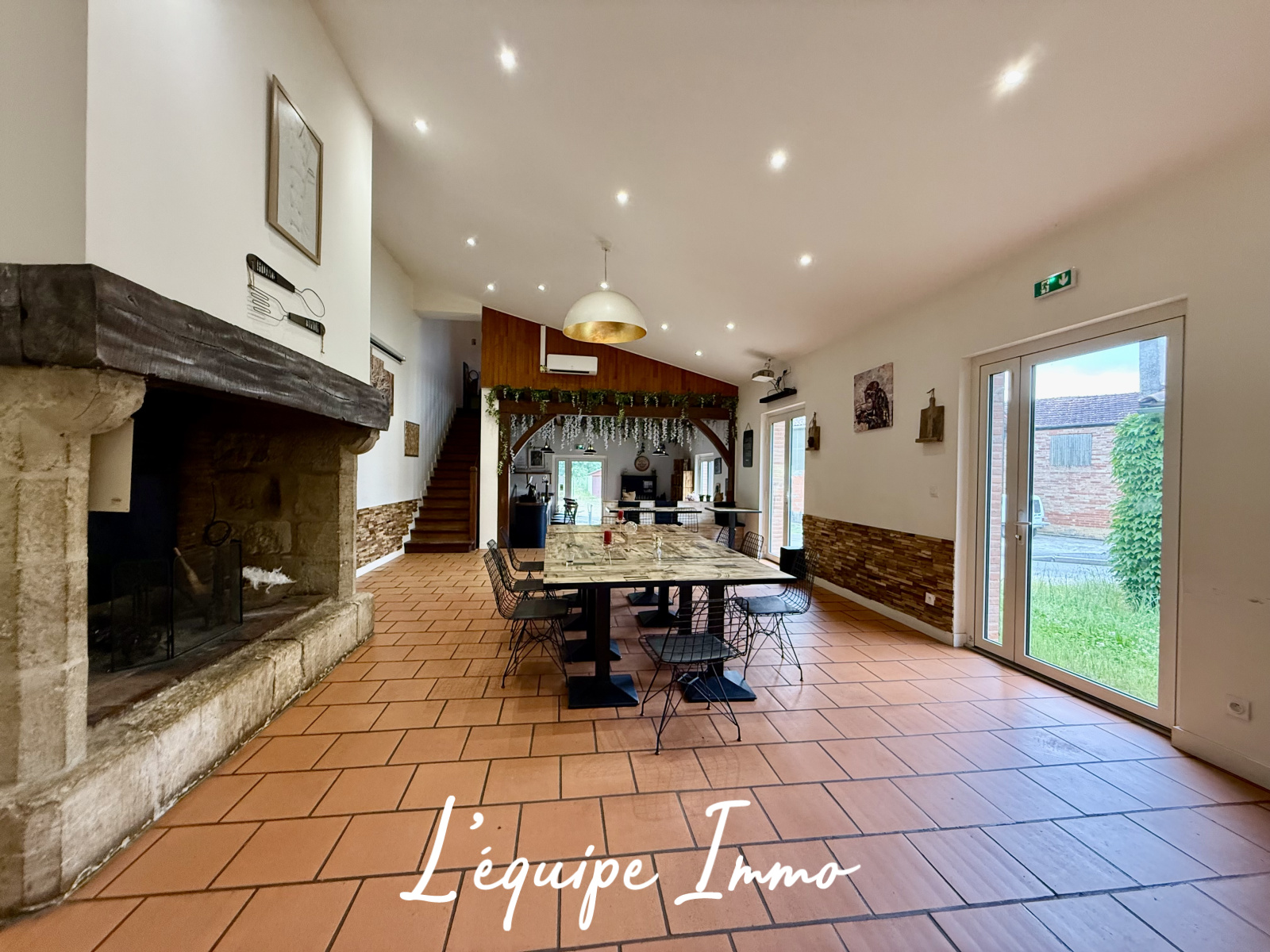 Elle se compose d'un appartement de type 5 (entrée, cuisine et salon en rez-de-chaussée, 4 chambres et salle de bains à l'étage) et d'un très grand espace de réception avec mezzanine pouvant être utilisé en pièce à vivre, en commerce ou même en second logement.