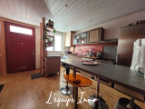 Au rez-de-chaussée vous trouverez la cuisine équipée, la pièce de vie avec un espace salon et salle à manger équipé d'un poêle à granules.