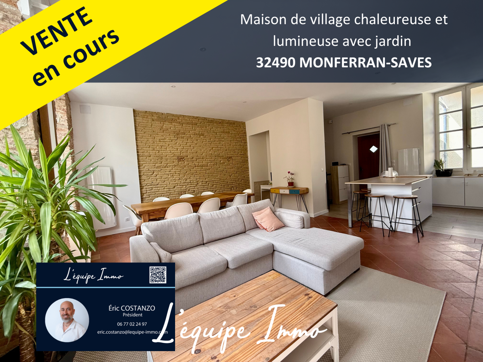 Située au cœur du village de Monferran-Saves, cette maison séduira les amoureux de l’ancien avec ses tomettes, ses briques foraines et son atmosphère chaleureuse.